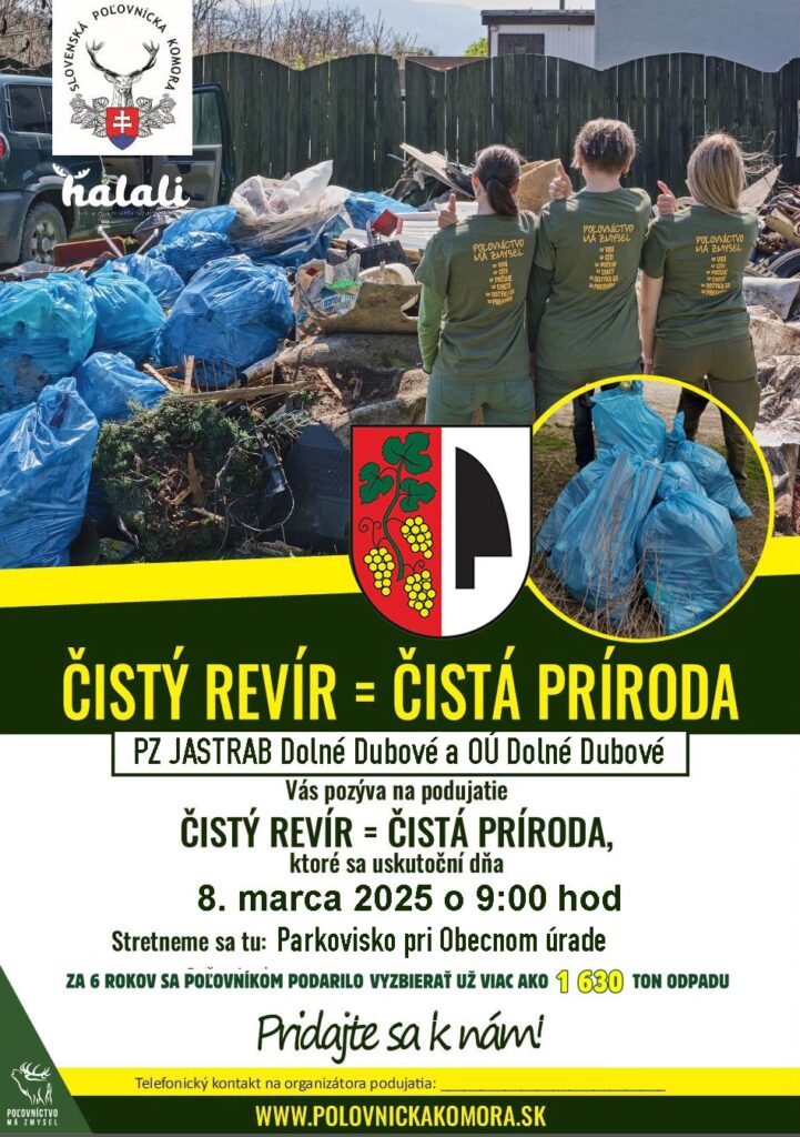 Aj v roku 2025 sa naše OZ ZELEŇ podieľalo na čistení prírody a to konkrétne v chotáry obce Dolné Dubové, kde sme spolu s miestnym PZ Jastrab Dolné Dubové, hasičmi a dobrovoľníkmi zorganizovanými obecným úradom vyzbierali mnoho odpadu. Teší nás, že odpadu ubúda, no vždy sa nájde niečo, čo treba z prírody odpratať. Ďakujeme všetkým za účasť, a obecnému úradu za milé pohostenie na koniec.
